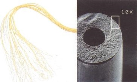 中空纖維膜管徑相對較小,一般小于3mm,通常用在水處理領(lǐng)域的中空纖維膜膜管外徑一般在0.8-1.5mm。