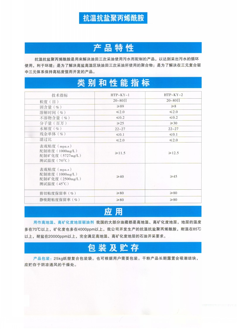 產品名稱:抗溫抗鹽聚丙烯酰胺